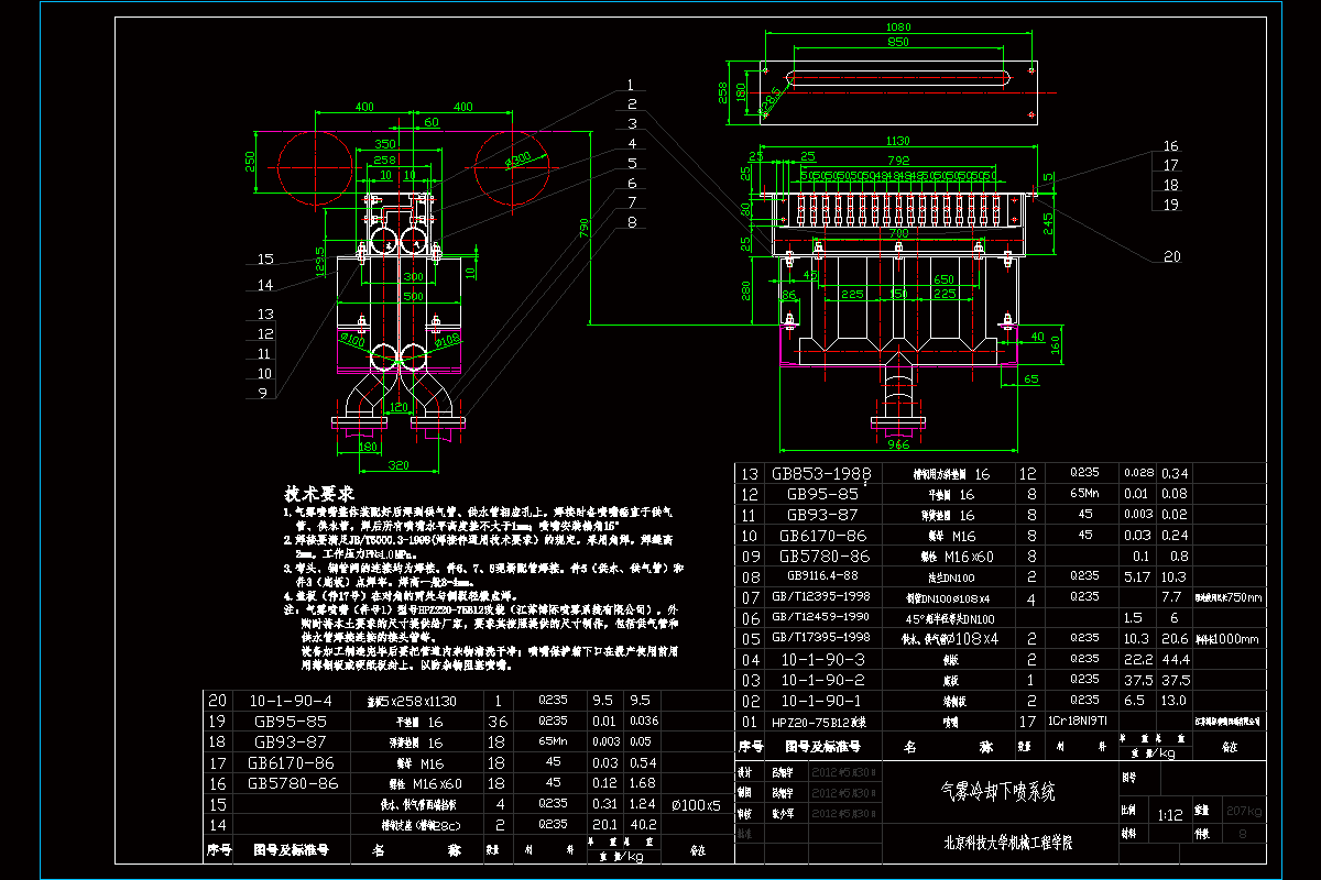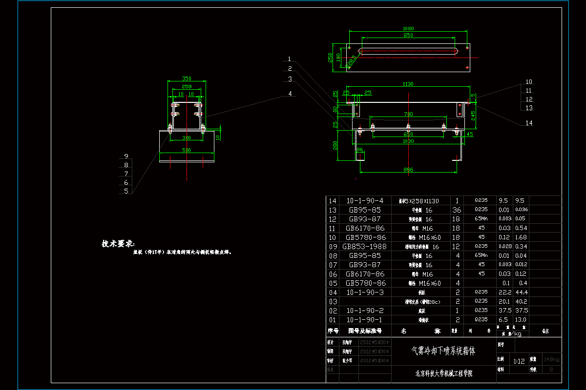 本课题针对我校为大连特钢设计的模具钢控冷设备,参考了中厚板在生产过程中成熟的在线淬火控冷技术,其中采用了空气冷却、喷气冷却、气雾冷却、水雾冷却以及喷水冷却5种由弱到强的冷却方式。本文主要是对气雾冷却系统进行相关设计和计算,并且确定最佳气雾冷却方案和气雾冷却系统的结构参数。在气雾冷却方案的设计过程中,以FLUENT软件为操作平台,使气雾冷却过程满足实际需求。本文研究的主要内容和结论是: (1)本课题中的控冷设备针对厚度为5-150mm、宽度为100-850mm、长度为2000-8000mm的模具钢进行冷却,其中,气雾冷却设备主要冷却薄的模具钢板。为了使模具钢板得到均匀冷却,本文对气雾冷却方式进行了方案的设计和气雾冷却设备结构的设计。同时,本文对所有的设计方案进行了比较详细的说明和比较,并使用了FLUENT软件对每个设计方案进行模拟实验,从中选择出最佳方案。在确定气雾冷却设备最佳方案后,设计气雾冷却设备的相关尺寸参数,完成气雾冷却设备初步设计。 (2)在进行气雾冷却设备喷嘴的间距设计中,对不同的设计方案建立其GAMBIT模型,同时在模型能定性解决问题的前提下进行模型简化,以便减少计算过程,节约时间。将网格划分完毕后的模型导入FLUENT软件进行模拟实验,检验结果,改进喷嘴布置后多次实验,从而确定最佳喷嘴布置方案,使得模具钢在宽度方向上得到均匀冷却。 本文对于气雾冷却系统的设计方法和研究思路对模具钢在线淬火冷却的研究和利用具有一定的参考价值。