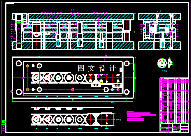 此零件比较常见,是升降外壳,但是常见的是复合模,需要设计多套模具,这个多工位级进模,是难得的一见,零件的基本工序,基本牵涉到冲压工序的所有工序,包含落料,切边,冲孔,翻孔,拉深等,通过详细计算,预孔直径以及展开毛坯尺寸,拉深系数等,再结合设计载体,将排样图合理设计出来,然后计算模具的各个尺寸,选择非标钢板结构模架,绘制模具结构图和零件图,以及三维图。