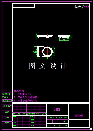 通过测绘实物,得到剥粒器零件的尺寸,绘制工件的图纸,然后结合工件的形状,选择合适的分型面,以及浇口位置,选择一模四腔结构,零件侧面没有孔,也没有台阶,因此无需设计抽芯结构,选择两板模结构最合适,结合所计算的尺寸,选择标准模架,绘制模具结构图和零件图。