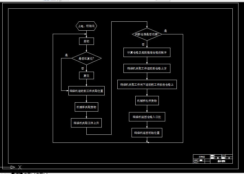 在设计过程中,不断参阅相关电气设计规范的资料,参照现有的码垛机的工作模式及控制方法,最终完成PLC为控制核心
