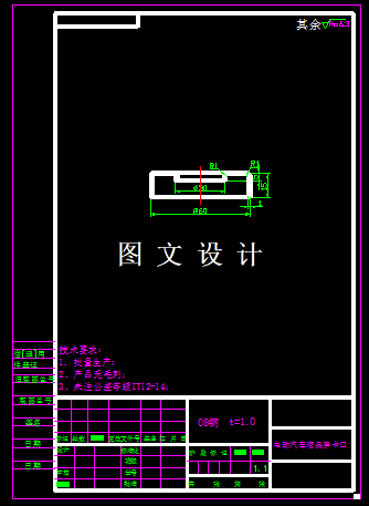 此零件是电动汽车液晶屏卡口,零件的形状比较简单,容易理解,外形是直筒拉深结构,中间是翻孔结构,通过计算,确定工件的外形展开尺寸,以及中间翻孔的预孔直径,计算拉深系数,确定冲压工艺,落料拉深,冲孔翻孔以及整形模。结合计算,选择圆形结构标准模架,计算冲压力的大小,并绘制模具装配图和零件图。