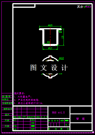 此管底零件,是个带有凸缘的拉深件,凸缘形状不规则,零件的高度尺寸也比较大,因此通过计算展开尺寸和拉深系数,需要多次拉深,本次主要针对首次拉深的复合模,和切边冲孔工序,进行模具的详细计算和图纸的绘制,并选择标准模架,选择合适的压力机。