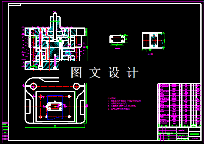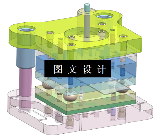 此零件是个平板垫片,零件的外形是规则长方形,四角圆弧过渡,内部有四个圆孔,对角分布成对称,通过计算排样图和模具刃口尺寸,外形尺寸等,选择标准模架,并计算冲压力大小,选择合适的压力机,利用软件绘制模具图纸。