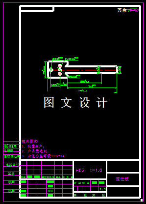 此定位板零件,成T字形结构,形状不规则,内部还有4个小圆孔,在设计排样图时,将大头和小头部分结合,合理设计排样图,计算出模具刃口尺寸和外形尺寸,然后绘制出倒装结构模具的装配图,零件图,计算冲压力大小,选择合适的压力机。