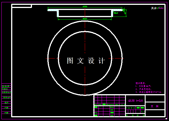 此零件,名为支架,零件的基本工序有落料,冲孔,翻孔,通过工艺分析,可以将三个工序,合并成一套模具,结合工件的外形尺寸,圆形结构,计算出圆形凹模的尺寸,并绘制正装结构的复合模,选择矩形的钢板模架,配合滑动导柱导套,绘制模具各个零件图。