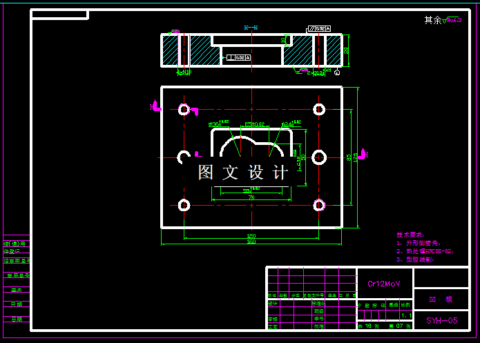 此双圆环零件,外形由圆弧过渡而成,两侧的圆弧半径大小不一,内部的两侧圆孔直径也不相等,因此采用错位排样的方法,才能提高材料的利用率,通过软件绘图排布,设计排样图,并根据此方案,计算模具的外形尺寸好刃口尺寸,绘制模具结构图和零件图。