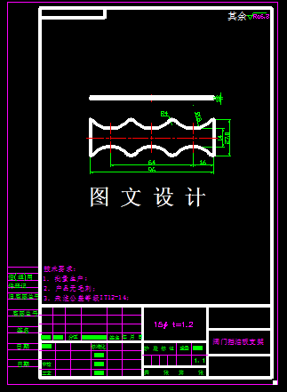 此阀门挡油板支架,是个平板零件,形状简单,中间没有孔,基本工序只有落料,通过详细计算排样尺寸,绘制合理的排样图,设计其倒装结构的模具,通过计算刃口尺寸和外形尺寸,绘制模具结构图和零件图。