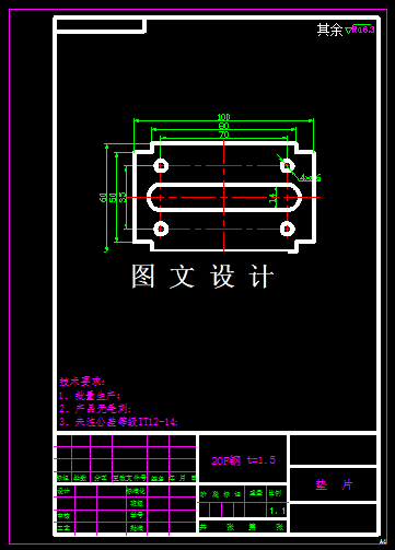 此垫片,外形类似矩形,但是四角有圆弧过渡,是对称零件,中间有个长孔,四个小孔四角对称分布,这样的零件,基本工序有落料和冲孔,在满足复合模的前提下,优先选择倒装复合模,并结合计算结果,绘制模具装配图,零件图,编制计算过程。