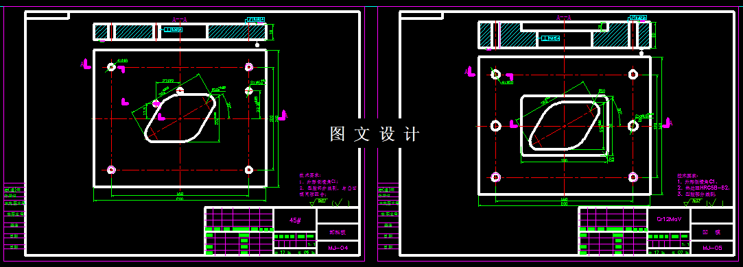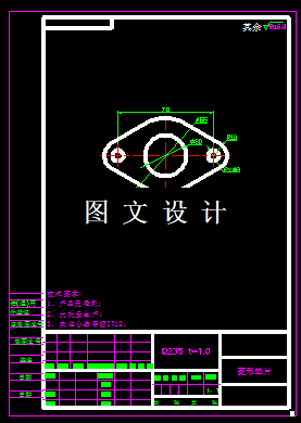 菱形垫片,形状简单,比较容易理解,菱形的外形,再加上几个圆孔,组合成一个垫片,结合工艺分析,确定设计倒装落料冲孔复合模,通过斜排的方式,提高材料的利用率,设计矩形凹模,计算凹模的外形和刃口尺寸,绘制模具图纸。