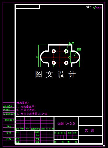 此零件属于垫板结构,外形不规则,但是对称,内部有4个圆孔,对称分布,孔的直径比较大,远大于板材的厚度尺寸,因此,满足复合模的要求,本次设计按倒装结构设计复合模,并记录设计过程和计算过程。