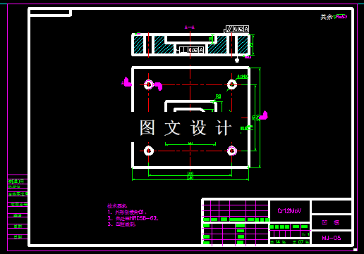 此零件图形比较简单,而且对称,属于平板类结构,基本工序只有落料和冲孔,结合工序分析,选择常见的倒装复合模,最为合适,因此按要求设计和计算出模具尺寸,绘制模具结构图和零件图。