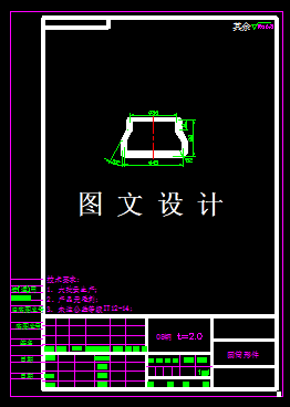 本次设计的圆筒件,不同意一般的直筒结构,口部直径小于拉深直径,因此工艺上要采用缩口结构,通过计算出零件在缩口之前的拉深高度,这时是直筒拉深件,然后再计算展开尺寸和拉深系数,确定一次可以成型,因此,工序设计成落料拉深模,缩口模,结合计算的结果,选择标准模架,绘制两套模具的结构图和零件图。