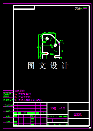 此固定板零件,是个平板结构,外形不规则,孔的位置也不对称,无规律分布,工件材料为20号钢,厚度为1.5mm,尺寸分析是可以满足复合模的要求,因此设计其倒装结构的复合模,并详细计算模具刃口尺寸和外形尺寸,选择标准件,标准模架,绘制模具结构和零件图。
