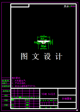 此零件外形虽然比较小,但是拉深部分却是阶梯结构,中间有个帽形拉深,外侧还有个台阶拉深,综合工艺分析,将落料和拉深分开,本次主要针对拉深工序,进行冲压模具设计,计算模具的外形和型腔尺寸,绘制模具结构图和零件图。