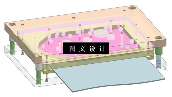 本次设计的背板,零件外形简单,板材比较厚,表面有孔,还有加强筋,考虑到工艺方案,设计其倒装结构的复合模,并结合压筋工艺,一起实现,计算模具的外形尺寸,外形比较大,因此选择闭式压力机,并绘制模具二维图,三维图和零件图。