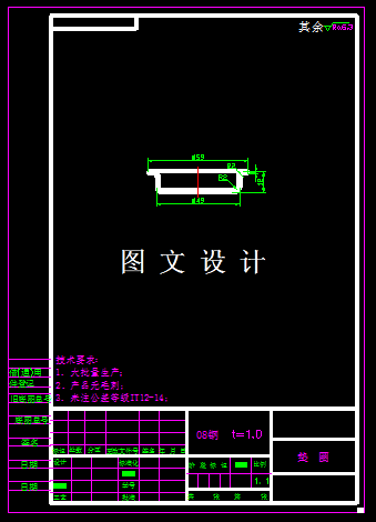 此零件是个垫圈零件,典型的凸缘拉深件,而且通过详细计算展开和拉深系数,可以确定一次拉深实现,因此计算模具的外形和刃口尺寸,选择圆形凹模,选择圆形标准模架,并绘制模具二维和三维图,制作模具运动视频更直观。