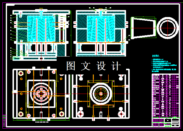 本次设计的零件是常用的垃圾桶,选择的材料为PVC,零件结构简单,只是外形比较大,因此选择一模一腔结构,选择直浇口,将浇口位置设计在底面,不影响零件的外观,详细计算各个尺寸,选择标准模架,绘制模具结构图和零件图。