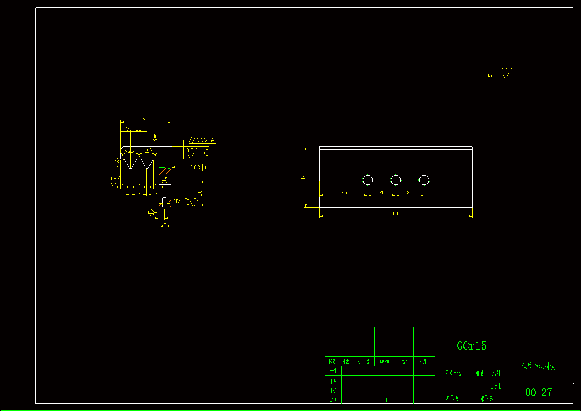 根据《产品标识标注管理规定》,产品标识是指用于识别产品及其质量、数量、特征、特性和使用方法所做出的各种表示方法的统称。机械及其相关产品在生产过程中需要对其零部件实现有效可行的管理,进入市场后需要对其进行质量追踪和监控,标识刻制设备可以很好地实现产品管理。标识刻制设备大概分为三类:金属电印标识刻制设备、激光标识刻制设备、气动标识刻制设备。三种标识刻制设备各有其优缺点,其中,气动标识刻制设备作为机电一体化产品,集成机械、电子、计算机等技术于一体。因其应用范围广、功能性强大、普遍适应性良好以及刻制出的标识难以被仿造等优势,所以近几年能够迅速占领标识刻制设备的市场,得到了广泛的应用和普及。虽然标记质量的好坏一般不会影响机械零部件的使用寿命及其性能,但是,因起作为产品综合质量的一个重要方面仍不容忽视,尤其是在当前竞争激烈的市场经济条件状况下,企业若要追求可观的经济效益和良好的市场口碑,必须重新审视产品标识的意义并提高标记刻制的质量。 气动标识刻制设备的系统组成主要包括:控制系统、传动系统、气动系统、标记系统。它的基本工作原理是联通来自计算机的控制信号,当计算机接到来自Y原点控制开关和X原点控制开关的信号后,带动标记头在驱动气源的配合下高速冲击,形成字符或图形点阵。 通过对气动标识刻制设备的组成和工作原理的了解,本文主要介绍的工作为气动标识刻制设备传动系统的设计,包括运动简图的设计、步进电机的选择、导轨、滚珠丝杠螺母副、同步带轮的设计和整体结构的设计,以及气动系统设计和打字程序的数控编程。