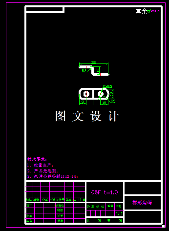 本次设计的家具角码,成Z形梯形结构,有两个弯曲角,零件尺寸比较小,首先计算工件的展开尺寸,综合工序分析,工人操作等,考虑设计其级进模,然后进行工艺比较,排样方案的分析,选择更合适的方案,计算模具尺寸和刃口尺寸,绘制模具图纸和零件图。