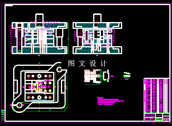 本次设计的是汽车用的接触片,此零件是个Z形结构,形状对称,尺寸比较小,采用复合模,工人操作不方便,影响生产效率,因此选择级进模,通过排样比较,设计双排结构,计算模具尺寸,绘制模具结构图和零件图,以及模具三维图。