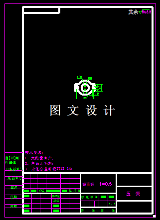 此压簧,是个弯曲零件,中间采用大圆弧过渡,首先计算其展开尺寸,然后选择合适的搭边值,计算数据,绘制排样图,计算模具的外形尺寸和刃口尺寸,绘制模具结构图和零件图,计算冲压力的大小,选择合适的压力机。