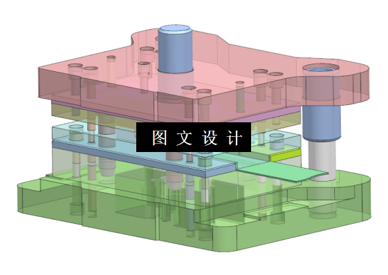 此夹头垫片,是个平板,内部孔比较多,外形规则,因此考虑到复合模凸凹模的强度问题影响到模具寿命,还是建议采用多工序级进模,将工序分开,孔和外形落料分两步完成,这样就能保证模具的寿命。通过详细计算合理设计排样图,绘制模具结构二维和三维图,以及零件图,选择标准模架和合适的压力机。