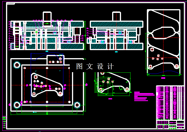此座椅架零件,单独看属于L型弯曲件,但是外形不规则,由各种圆弧过渡而成,内部孔比较多,不规则分布,因此需要落料和冲孔合并,单独设计一套弯曲模,展开计算后,通过合理排样,计算模具的各个尺寸,设计落料冲孔倒装复合模,并绘制冲裁模和弯曲模的结构图和零件图。