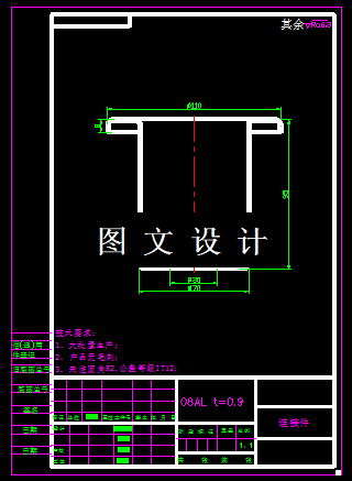 此连接件零件,结构比较复杂,工序比较多,综合考虑,本次只是针对底面的圆孔,进行冲裁模具设计,课题的难点在于工件的定位,利用拉深好的形状进行定位,设计正装结构的模具,这样模具闭合高度比较大,计算冲压力的大小后,选择合适的压力机并校核。