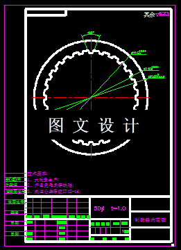 本次设计的花键片,外形是圆形,中间的孔,是由多个线段组成,成齿状,对称分布,中间形状和外形圆保持同心,因此满足冲压复合模的要求,计算模具尺寸和刃口,选择圆形结构模架,绘制模具图纸。