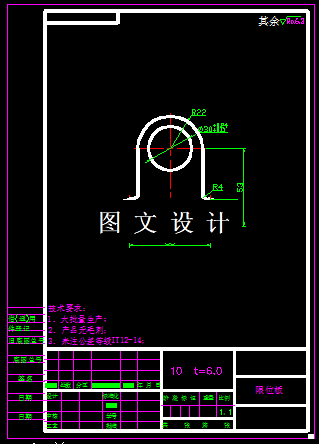 本次课题是类似T形的限位板,此零件所选择的材质为10#钢,厚度6.0mm,为了满足生产的需求,选择倒装结构的复合模。通过合理排样,提高材料的利用率,并计算模具的外形和刃口尺寸,选择合适的模架,计算冲压力大小,选择压力机。并绘制模具图纸。