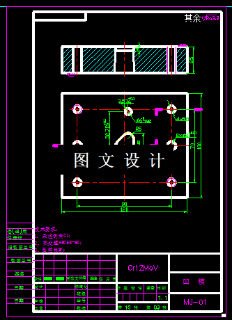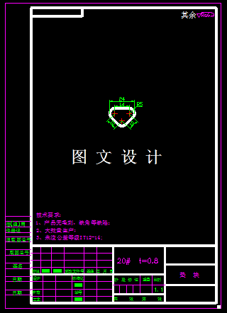 此零件形状简单,三角形结构,中间没有孔,只有一个工序,落料结构,四周圆弧过渡,因此适合冲裁模具。结合工件形状,设计正装结构的落料模,两侧材料导料板定位,送料方向设计挡料销,计算模具外形及刃口尺寸,绘制模具图纸。