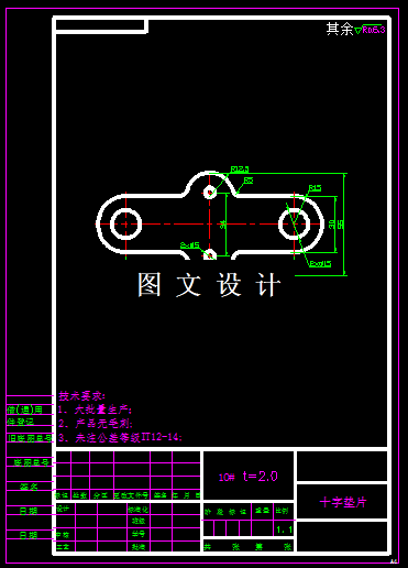 此零件属于垫片类,外形成十字形,因此叫十字垫片,从尺寸分析,满足复合模的要求,为了满足生产需求,可以选择复合模生产,计算模具的外形尺寸和刃口尺寸,绘制模具二维和三维图纸。