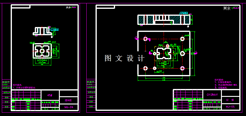 此零件,从图形分析,中间有个圆孔,四周形状规则对称,因此适合采用正装结构的冲裁模,下模利用弹性卸料顶出,上模利用打料杆,直接排出废料。计算模具的各个尺寸,然后绘制装配图和零件图。