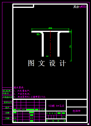 本次设计的零件,是宽凸缘的深拉深件,根据设计要求,本次需要设计复合模,结合零件的基本工序,只有首次拉深和毛坯的落料,这两个工序可以复合,因此详细计算零件的毛坯尺寸和拉深工序尺寸,并计算模具的刃口尺寸和外形尺寸,选择合适的模架,设计正装结构的复合模装配图和零件图。