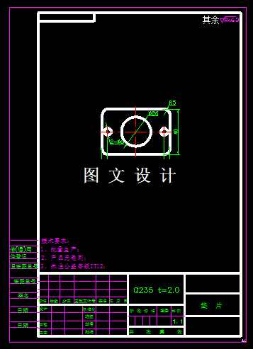 此垫片,形状规则对称,中间有三个圆孔,孔边距离满足复合模的要求,因此,选择设计倒装结构的复合模,详细计算模具的刃口尺寸,外形尺寸,以及标准模架,最后绘制模具结构图及零件图,选择合适的压力机。