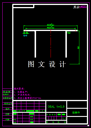 此连接件,是一个宽凸缘的拉深件,通过方案的比较分析,确定该零件,设计其中的切边工序。该零件拉深的部分尺寸大,而且高,因此设计成倒装结构,将工件拉深部分放置在下模,这样上模就不需要那么高,选择模架后,节省模具材料,绘制模具结构图和零件图。