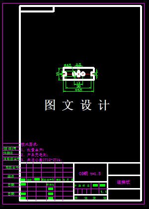 本次设计,是针对连接板,进行冲压工艺及模具设计。采用落料、冲孔工艺。设计中分析了工件的冲压工艺性,计算了毛坯排样、冲压力、刃口尺寸计算等。进行了模具总体结构、主要零部件的设计和计算,绘制了落料、冲孔复合模的模具装配图和零部件图。