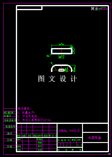 本次设计的是长圆盒形的拉深件,中间有个长孔,通过查阅公式,详细计算展开尺寸,展开图形不规则,