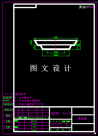 本次设计的零件,尺寸中等,但是基本工序比较多,拉深部分有台阶,需要进行多次拉深才能实现,本次主要是针对首次工序落料,进行模具详细结构设计,因此要先计算出工件的展开尺寸,然后进行模具设计,设计其倒装结构的模具,并详细计算和分析模具结构。