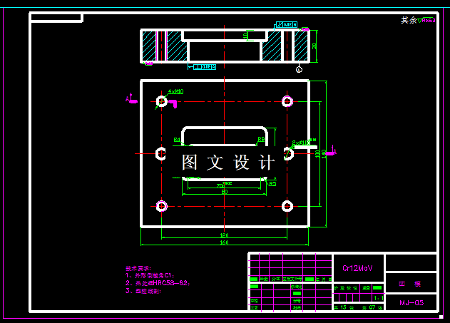 本次设计的短连杆零件,从工件形状看,成7字形,因此合理的排样,可以提高材料的利用率,选择合适的搭边数值,计算利用率的大小,并绘制倒装模具结构图纸,计算模具的刃口尺寸和外形,冲压力,选择合适的压力机和模架,绘制模具零件图。