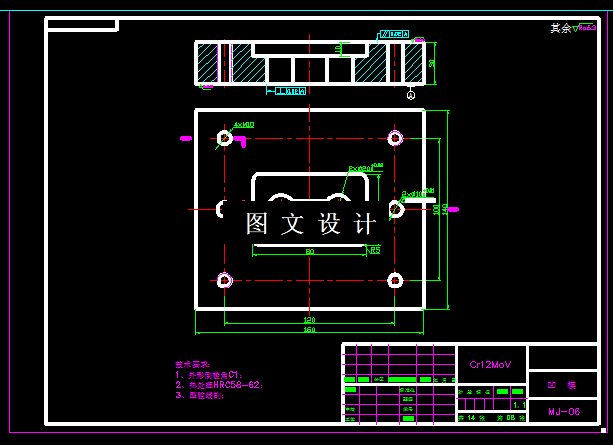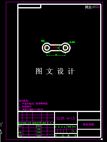 本次设计的零件形状简单,两侧圆弧过渡,中间小,成哑铃形,板材厚度为1.5mm,材质为Q235,通过凸凹模壁厚的尺寸对比,可以确定,适合采用复合模结构,本次设计通过详细计算后,确定设计倒装结构复合模,并绘制模具结构图。