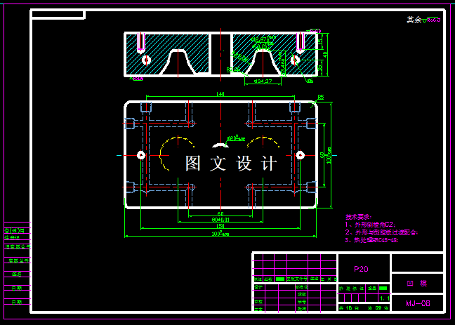 本次设计的零件为罩形零件,工件的形状比较简单,侧面圆弧过渡,外形是个圆形,因此将分型面设计在零件的端口处,零件内部有卡扣,因此需要设计斜顶机构,才能脱模,通过对零件的分析,选择一模两腔,两板模结构,绘制模具图纸。