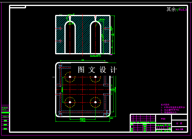 的球形端头,选择一模四腔结构,三板模的形式,计算模具型腔尺寸,外形尺寸,选择合适的标准模架,绘制其结构图。