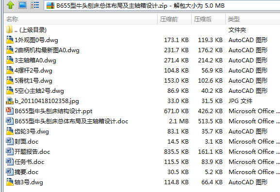 关键词:B655型牛头刨床;滑枕;主轴箱;总体布局;过桥齿轮轴