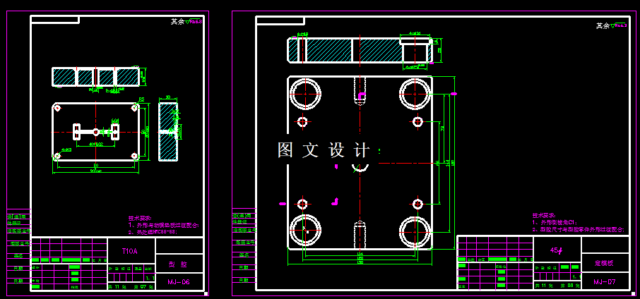 顶这圆柱形位置,这样的结构能顺利脱模,对工件外形没有影响,设计一模两腔结构。绘制模具图纸,选择标准模架。