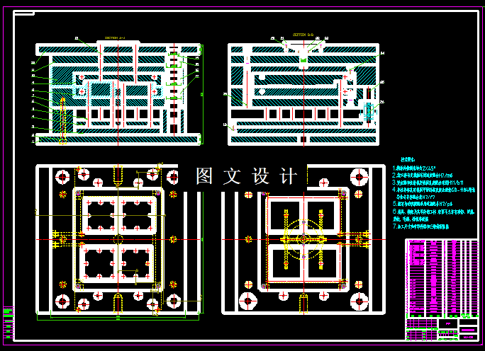 所设计的餐盒,零件生活中常见,零件壁厚均匀,有小型的卡口和加强筋,但是对工件的成型没有影响,因此设计强制脱模机构模具,选择一模两腔结构,绘制模具结构,计算详细尺寸。
