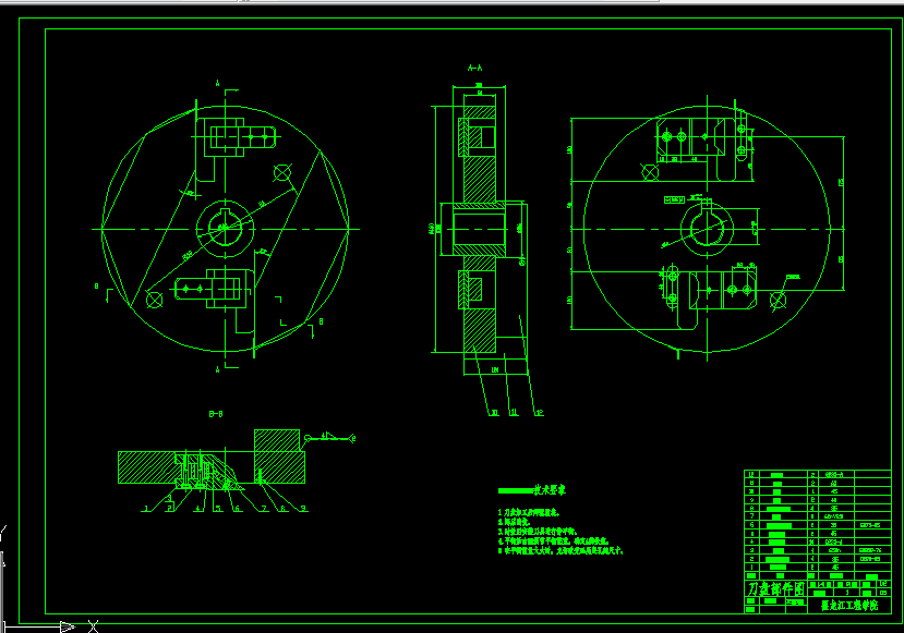 在此次设计中,机架、左右上盖都采用了焊接件,降低了整机的重心,有效地增强了整机的稳定性;电机和轴之间通过皮带传动,缓和了载荷冲击,防止过载给飞刀等主要部件带来的损坏;轴通过两个圆锥滚子轴承与机架连接,防止轴产生较大的跳动影响木片合格率;刀盘和轴之间配合紧密;飞刀用压块夹紧,牢固稳定,方便拆装和更换。
