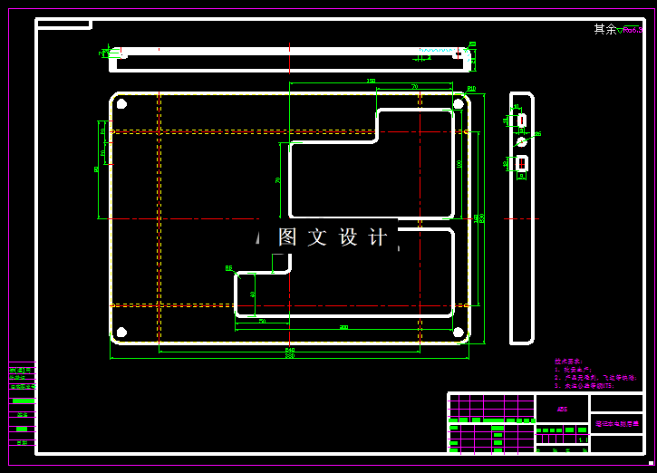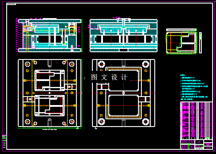 本次设计的零件,是常用笔记本电脑的后盖,零件壁厚均匀,底面有不规则孔,侧面也有孔,用于USB接口,因此,这部分需要设计抽芯结构,结合生产需求,设计一模两腔结构,选择标准模架绘制标准图纸。