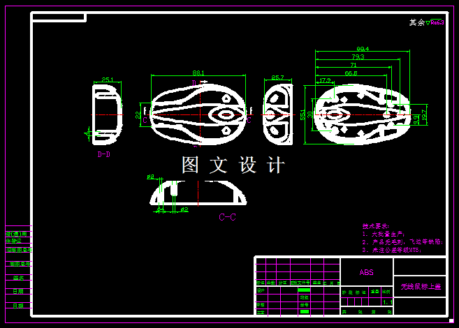 本次设计,利用UG软件,对无线鼠标外壳,进行注塑模具设计,该零件形状复杂,有曲边,但是侧面没有孔,无需设计抽芯机构,结合工件形状,绘制一模两件结构。结合工件形状,绘制模具图纸。