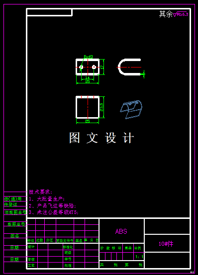 本次设计的零件形状简单,是个U形零件,零件底面有两个圆形孔,零件壁厚均匀,因此设计模具时,